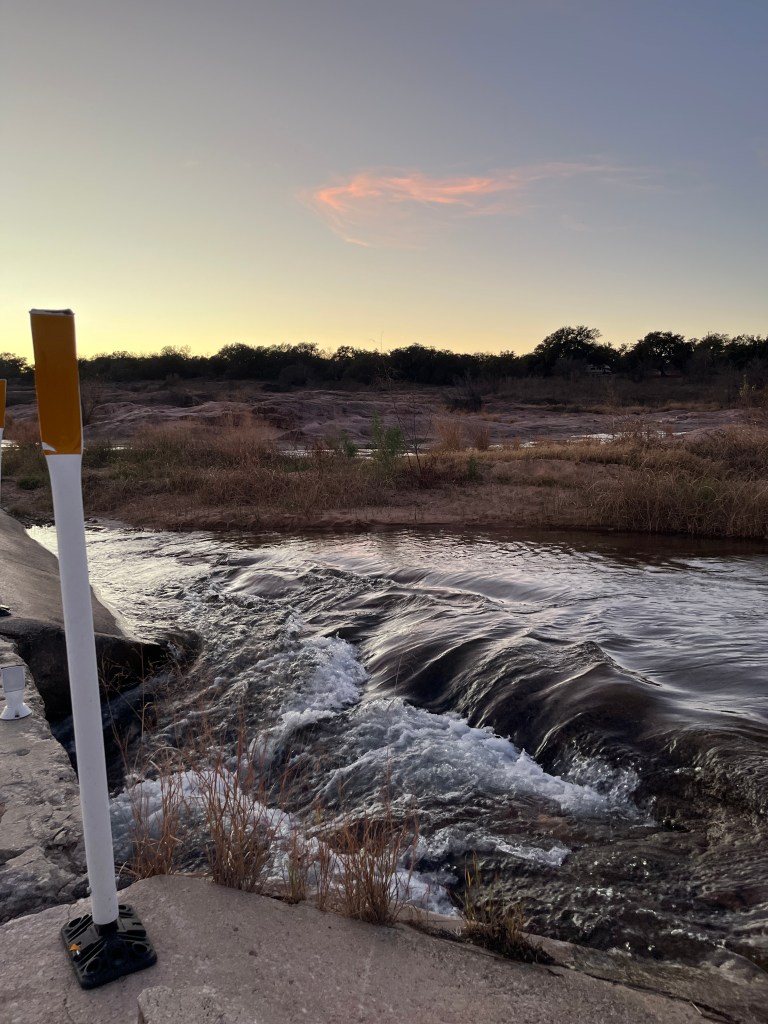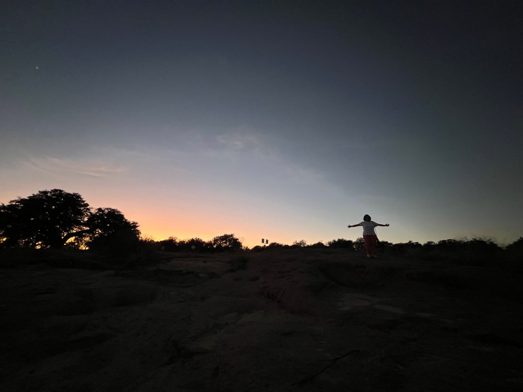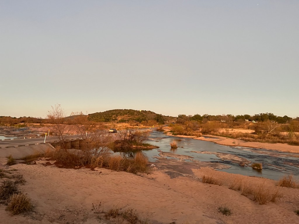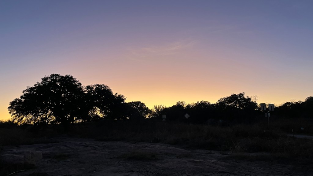On the first evening, Laura recommended to visit the Slab Bridge that is a granite formation on the river upstream of the Llano River. We were able to reach the place before sunset. You cannot find this place on any recommendations on the internet. It has two reviews on Google Maps, but the river crossing was gorgeous with brown granite rocks and a partially flowing stream. The sunset sky turning from blue to yellow to orange to shades of purple, pink, blue and dark was something that cannot be described in words; it has to be seen with your own eyes. The clear night sky was starting to get visible with Venus brightly above the setting sun. On the way to the Slab Bridge, we saw a lot of deer walking around the homes. I was very careful while driving back to the home-stay. After eating some delicious birthday biriyani that I made, we went back to the river beach where there was a fire pit burning (started by other guests).