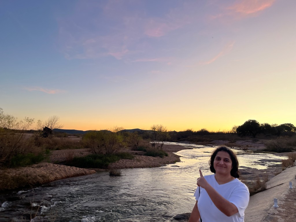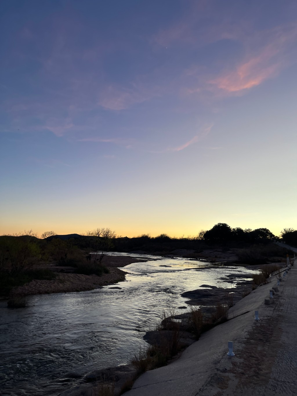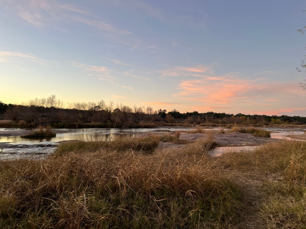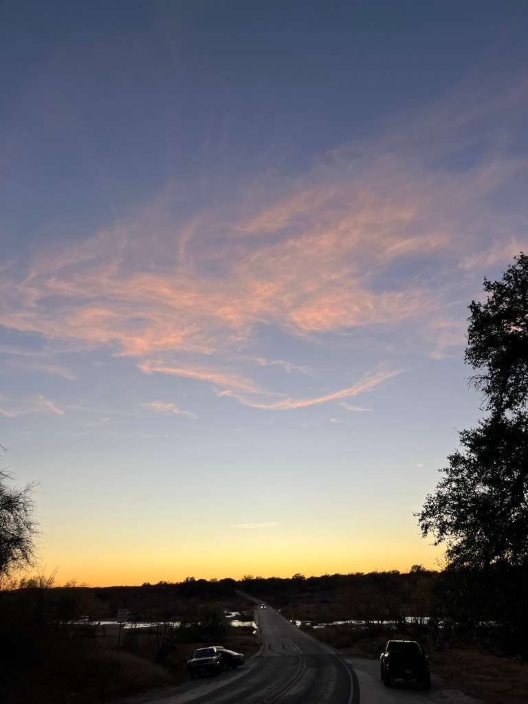 On the first evening, Laura recommended to visit the Slab Bridge that is a granite formation on the river upstream of the Llano River. We were able to reach the place before sunset. You cannot find this place on any recommendations on the internet. It has two reviews on Google Maps, but the river crossing was gorgeous with brown granite rocks and a partially flowing stream. The sunset sky turning from blue to yellow to orange to shades of purple, pink, blue and dark was something that cannot be described in words; it has to be seen with your own eyes. The clear night sky was starting to get visible with Venus brightly above the setting sun. On the way to the Slab Bridge, we saw a lot of deer walking around the homes. I was very careful while driving back to the home-stay. After eating some delicious birthday biriyani that I made, we went back to the river beach where there was a fire pit burning (started by other guests).