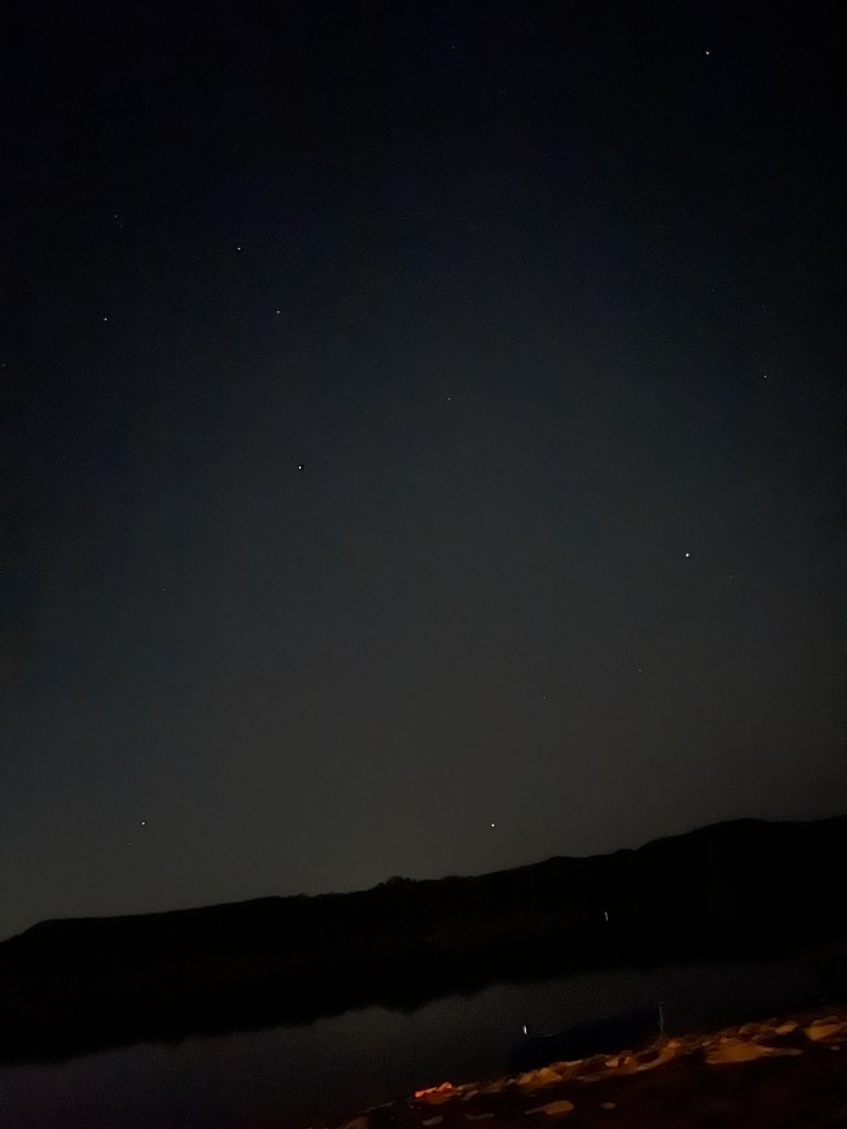 By the river beach, surrounded by all five elements of the earth, I loved looking at the stars that we never see in cities. This must be the most number of stars I have ever seen in my life. The stars of Orion were overwhelmed by the millions of other stars on the sky. You can even see the cloud of Orion Nebula here. The seven sisters of Pleaides was the most beautiful among all. I spent a lot of time to identify the Andromeda Galaxy on my phone camera but was able to identify the position only on the second night. Yet, I couldn’t get it bright enough on my phone. As I write this, Laura’s dog Peregerine is digging the soil investigating something. She left the area probably disappointed with her finding.