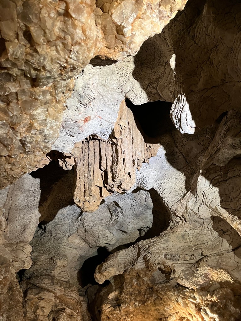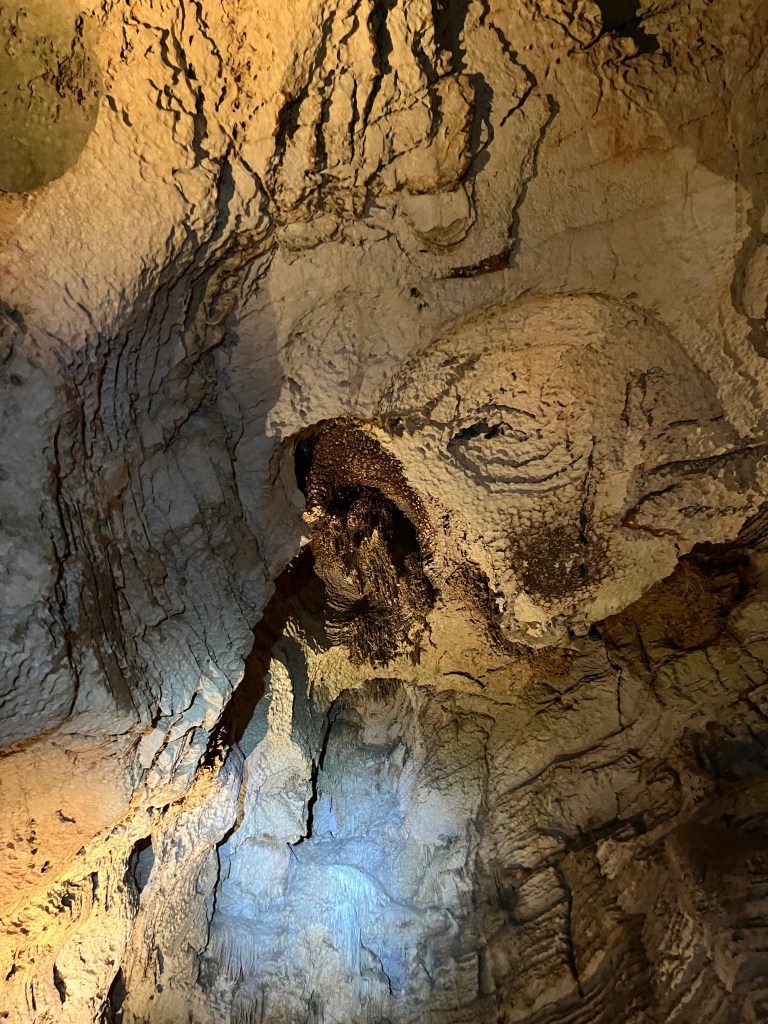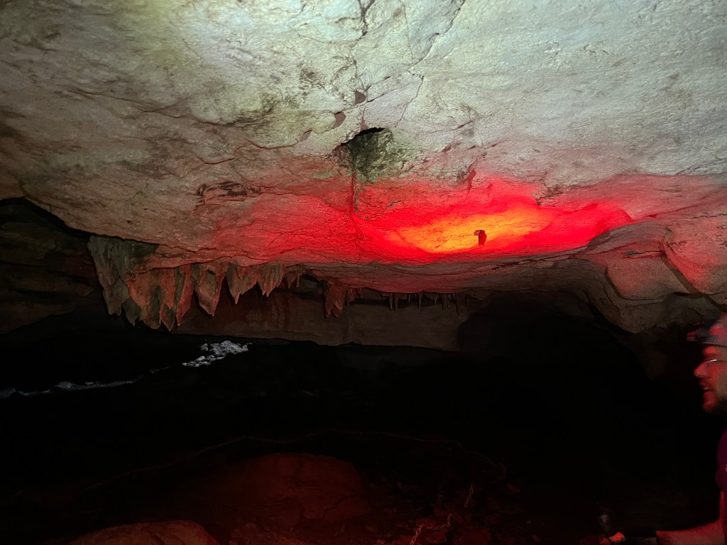 The second part of the third day was the most unbelievable experience for me. I booked an intermediate level cave tour in the park. The description was that you will get an introduction to real wild caving taking deeper into the cave by crawling and getting dirty. Just the entrance of the cave made me question my decisions. It was a narrow slit through the rocks where you had to squeeze in and go down. This slit was apparently made due to an earthquake and there are several such fissures in the rocks due to earthquakes. Once our group of four people reached the bottom of the slit which was about 15 to 20 ft depth, we had to crawl inside the rock cavities left by the river water flow. We crawled on our knees with our helmets hitting the ceiling at every second crawl. Once you crawl further, the cave becomes roomier with amazing stalactites and stalagmites on the ceiling and floor. This cave is inhabited by a species of bats that prefer to live alone. The first bat that the guide was expecting was not in its home (a hole in the ceiling) but we got to see “Rocky Sand”, another bat that lives next to a stalagmite formation named as “Turtle Shell”. There was another bat nearby which even the guide did not know that it lived there, probably a new resident. The Turtle Shell formation was more than 3 ft in diameter protected by chains around it so that cavers do not come in contact with it. Just touching with our fingers can transfer our skin oil on the stalagmite and they will stop growing further. These formations grow about an inch in a century, so they very well deserve our precaution. We got to touch a broken stalactite and struck it with our fingers to hear the tingling high pitch sound. Holding a stalactite that took several years to form was an unbelievable experience for me. The cave guide allowed us to explore the cave by ourselves by crawling through the nooks and crevices to find living things in the cave or find a space where we can also stand up on our legs. One of the group members found a baby scorpion under a stone. The scorpion glowed in a bright turquoise blue color on showing a UV slight on it. We got to experience how total darkness feels like by switching off all our lights for two minutes. The pitch darkness confuses our human brains and makes us hallucinate things that we cannot see. This explains how dreams, prophecies, and visions are reported by religious people, usually in dark places. We saw a lot of cave crickets that apparently do not have eyes as they are useless in the dark caves. Still, there were are also few invasive fire ants that do not belong in that environment. Then we crawled out of the cave sometimes crawling on our bellies almost like how the people in the military get training. Climbing out of the cave, I was in awe of what I accomplished that was not even on my wish list.