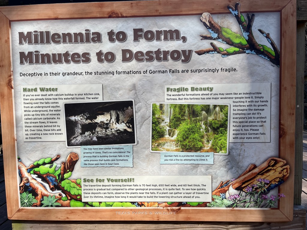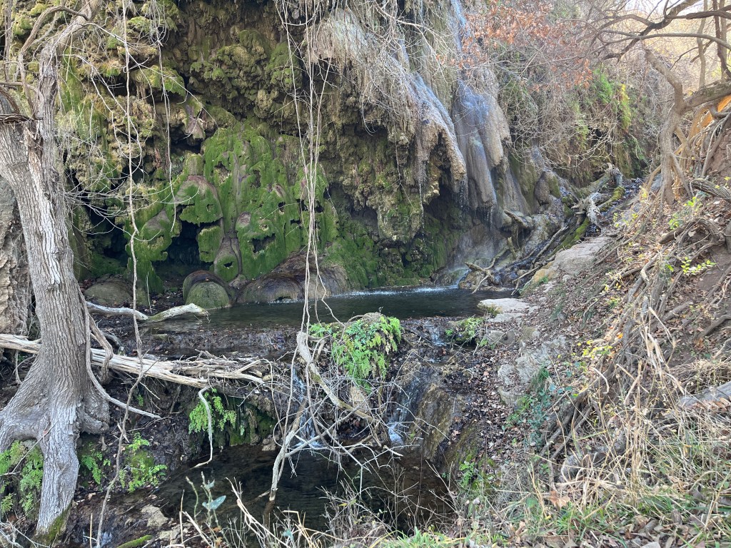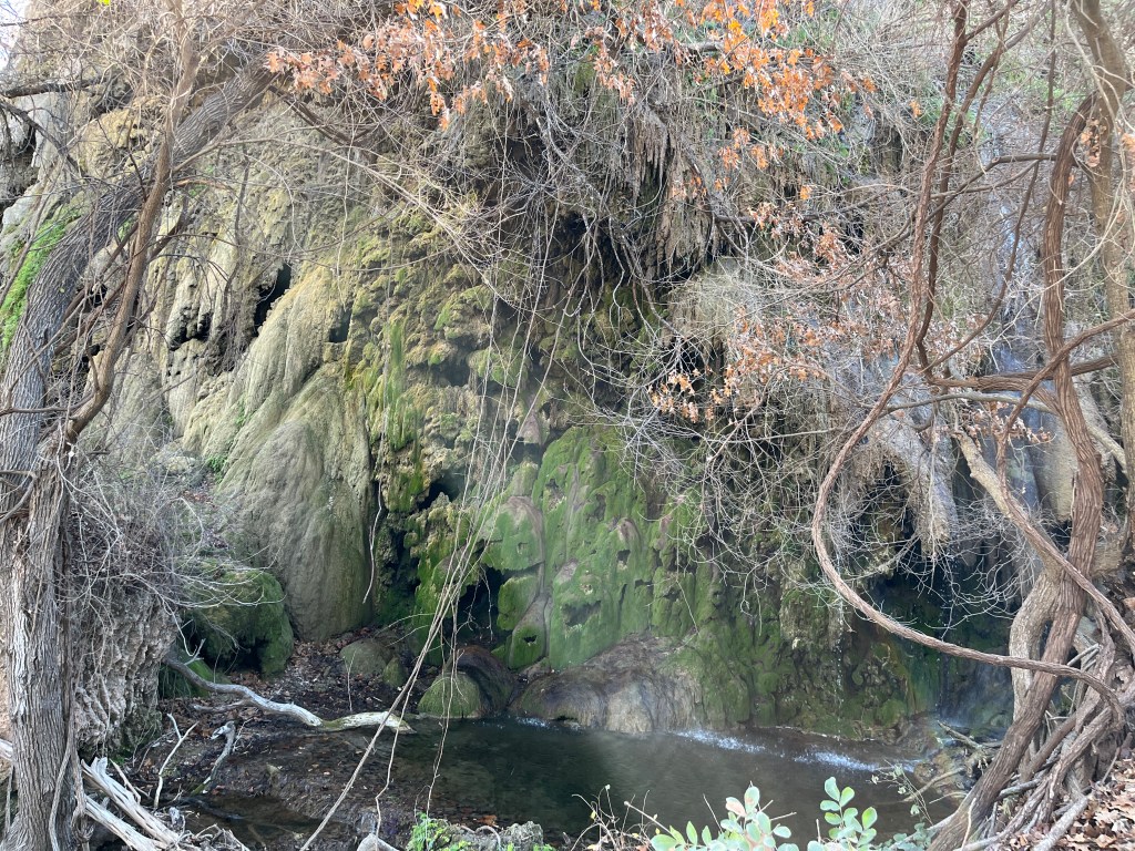 On the third day on New Year’s eve, we visited the Colorado Bend State Park driving through the rural roads for more than an hour. We hiked the Gorman Falls Trail, which was Moderate/Difficult level for just 1.5 mile length. The rocky trail was easy to hike through but the final segment of about 100 ft was the most difficult with steep drops and required handrail support. But what a beauty it was in front of our eyes! The Gorman Falls is one of the best falls I have ever seen, not because of the water but because of the stalagmite formation on the rock and the growth over the plants. This is a billion years old waterfall and has seen the most historic moments of the world. The waterfall is from the Gorman Spring that was also near it. There is another trail that leads to it. I will visit it next time I go to Colorado Bend State Park.